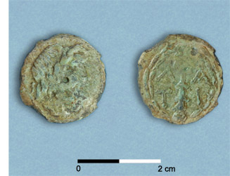 coins. Several coins were found in the pit and one of them, recovered at a depth