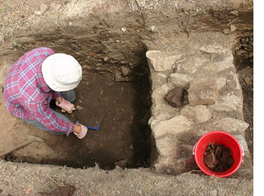 pit and Trench F in one of the square rooms flanking the courtyard.