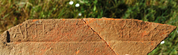 The second stamp is less common; so far only four fragments belonging to this type have been found. The stamp is at least 17.5x3.5 cm large, although the length on the basis of the preserved letters probably was around 30 cm. The beginning of the text can be reconstructed on the basis of two fragments (ΔΕΣΠΟΙΝ.... and ...ΝΑΣΑΚ...) as reading Δέσποινας ΑΚ..., i.e., belonging to Despoina AK.....