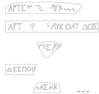 Artemis appears only once with the topographical epithet Lykoatis and that is in the small Mainalian polis Lykoa/Lykaia, which is known from Pausanias’ description of the route from Megalopolis along the river Helisson to the plain and mountain of Mainalos (Paus. 8.36.5-8). The stamps prove without doubt that Lykoa/Lykaia was located at Agia Paraskevi of Arachamitai, a fact that in a significant way redraws part of the ancient Arcadian topography, as it implies that the Arachamitai valley is identical with the valley of Mainalos and the Agios Elias mountain is the Mainalos mountain. Observations on the Rest of the Site