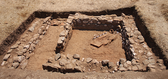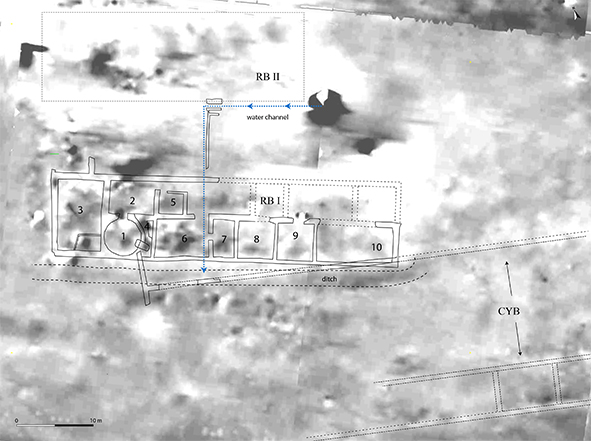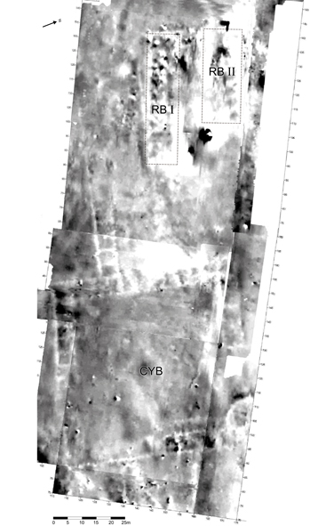 Rectangular Building I During the four week long field season in June and July 2012 ca. 100 m2 of RB I was excavated. We now finally managed to localise its eastern short end, thus confirming that the total size of RB I is ca. 45x11 m. We also confirmed our general picture of the division of rooms, which are arranged in two rows divided by a longitudinal wall running in east to west direction. The only exception from this is Room 3 in the western end of the building, which stretches across it from the southern until the northern long wall.