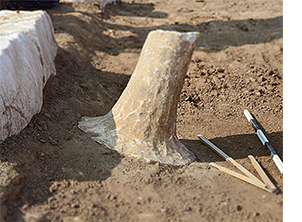 The entrance hall of the propylon was covered by only some 10 cm of topsoil. The